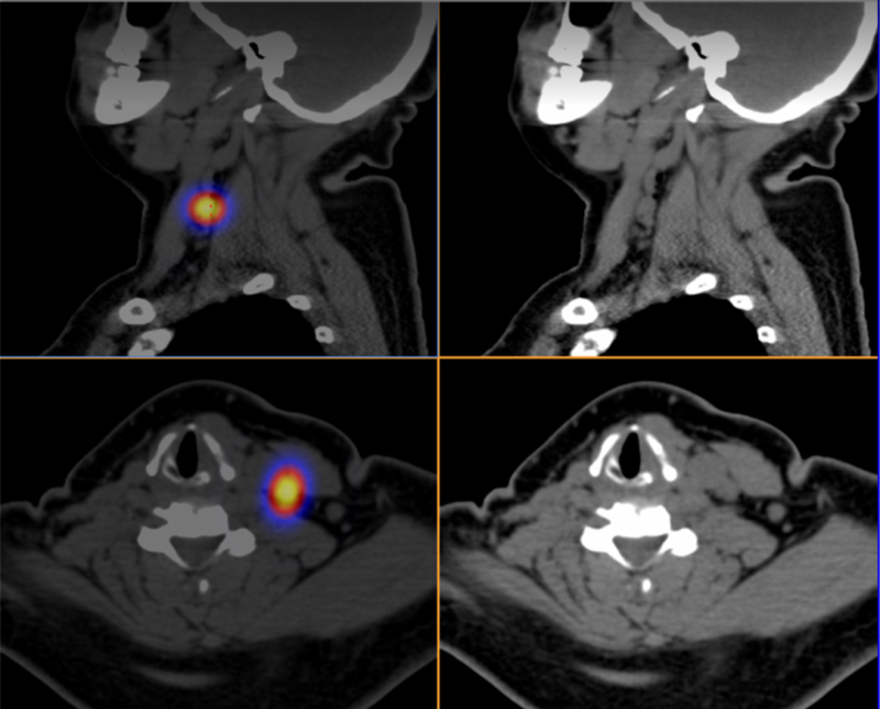 Iván Vega-González1, Germán Osorio Arenas2, Flor María Quintero Álvarez1, Zaki Taissoun Aslan3, Sergio Zúñiga Pavia3, Juan Carlos Ramírez Fontalvo1, Carlos Simón Duque Fisher1, Lina María López Vélez1, Juan Carlos Ramírez Yepes4, Miguel Martínez Villegas5.1 - Unidad de Medicina Nuclear, Clínica Las Américas. Medellín, Colombia..2 - Radiología y Física Médica, Clínica Las Américas. Medellín, Colombia..3 - Cirugía de Cabeza y Cuello, Instituto de Cancerología. Medellín, Colombia..4 - Estudiante de Medicina, Universidad CES. Medellín, Colombia..5 - Médico General, Universidad CES.