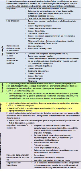 Tabla 1. Actuales indicaciones de uso de la 18F-FDG recogidas en el resumen básico europeo de características del producto.