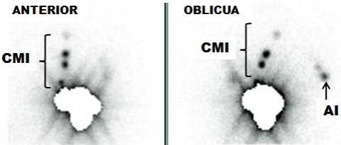 El SPECT/CT es una técnica que ofrece superior contraste y resolución que las imágenes planares; es útil para localizar anatómicamente las captaciones ganglionares(3,4), para identificar ganglios ocultos(5,6) y para mejorar la visualización de los ganglios extra-axilares(8,9). Se ha descrito que el 5% de los casos con ganglios metastásicos no se visualizan inicialmente y sólo son detectados por la imagen híbrida(10,11). Como se ha mencionado, el valor adicional del SPECT/CT es un mapeo linfático más preciso en la evaluación del ganglio centinela. El SPECT/CT se recomienda para la localización de ganglio centinela en el melanoma(12), neoplasias urológicas y ginecológicas(13), pero no se realiza de forma rutinaria en pacientes con cáncer de mama; sin embargo, en los tumores mamarios, algunos autores aconsejan la realización de SPECT/CT adicional a la linfogammagrafía convencional en casos con drenaje linfático extra-axilar, imágenes planares de difícil interpretación o si no se comprobaran focos captantes en el estudio convencional(8). El caso presentado alerta a los especialistas sobre la posibilidad de metástasis ganglionares a la axila contralateral y el valor adicional de las imágenes multimodales SPECT/CT.