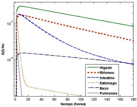 | Riñones | 3,60E-03+6,89E-4 | 2,05E-03+1,68E-4 | 1,55E-03+8,01E-4 | 1,21E-03+4,90E-5 | 1,08E-03+1,87E-4 | 4,22E-04+3,96E-5 |