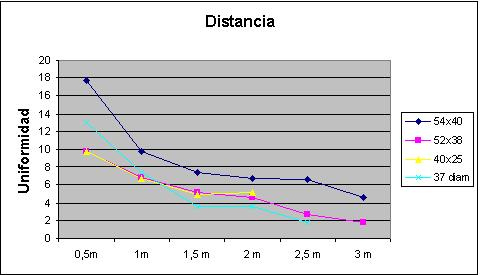 Las variaciones de la UI con respecto a la distancia fuente-detector varían dependiendo de las dimensiones de cada detector, pero el punto de inflexión general se ve claramente en 1.5 metros. A partir de esa distancia mejora notablemente el rendimiento del control.