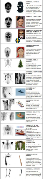 Este trabajo presenta veintiún signos centellográficos de aparición en la literatura y propone el uso de nuevos signos. Las imágenes obtenidas de estudios óseos con 99mTc-MDP son confrontadas con los objetos de comparación que dan nombre a los signos, acompañados de una breve explicación de su significado clínico.