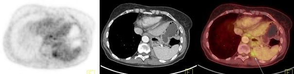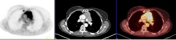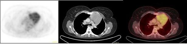 Los linfomas exhibieron captación de 18FDG uniformemente elevada, con SUVmax promedio de 15,4 (rango 15,2 a 15,7). Uno de ellos presentó compromiso local de la pared torácica.