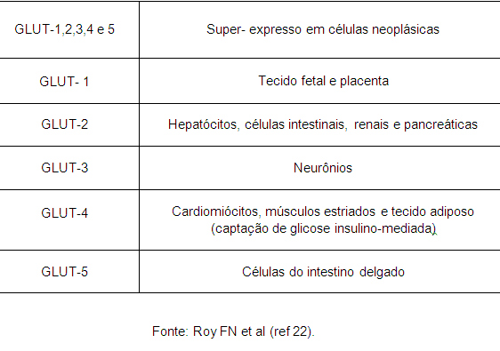 Dentre os mecanismos de carreamento da glicose para dentro da célula, destaca-se o transporte de glicose é de extrema importância para o metabolismo celular. Como já se sabe, a glicose é uma fonte de energia predominante para o nosso corpo e cérebro, e sua entrada na célula ocorre por meio de transportadores (GLUTs)(17). Com os avanços de estudos em pesquisas na biologia molecular, novas moléculas são desvendadas. Antes eram considerados apenas cinco tipos de (GLUTs)(19). Hoje são descritos pela literatura uma família de cerca de 14 subtipos de (GLUTs)(20).